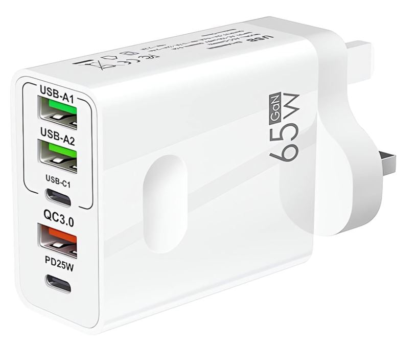 USB C Plug Fast Charge, 5-Port 65W Multi USB Plug UK Fast Charger Plug USBC Power Adapter+QC Wall Charger Head Type C Charging Plug Compatible with iPhone 17 16 15 14 13 12 11 Pro Max,Samsung
